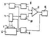 참조 번호 10은 주사된 패턴의 결함이 없는 파형성형회로 8로부터의 데이타 비데오 신호의 지정된 진폭과 같은 진폭을 갖는 배교기 11에 대해 "광학적 비데오 신호"를 공급하기 위해 카메라 7로부터의 출력을 성형하는 2차 파형성형회로이다.