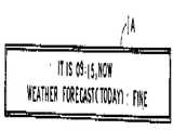 특히 표시장치가 1문자단위로 표시하는 것일때는 1문자마다 문자열이 스크롤하게 되므로 점멸주기나 점멸비율이 상기 스크롤속도와 맞느냐 안맞느냐에 따라 그 쉽게 보는 정도에 큰 영향을 끼치게된다. 그런데 날씨, 바람, 비, 온도등의 기상상황에 관한 관측정보나 주가지수, 환율등의 시장동향에 관한 정보는 시간의 경과에따라 그 내용이 변동하는 것이지만 이와같은 정보를 상기 표시장치에 표시하는 경우에는 날씨의 종류, 강우확율, 온도, 지수, 환율등을 설정하기 위한 기능이 필요하게 된다.In particular, when the display device displays a character unit by one character, the character string is scrolled for each character, which greatly affects the degree of easy viewing depending on whether the flashing cycle or the flashing ratio is matched with the scrolling speed. However, the observation information on weather conditions such as weather, wind, rain, temperature, and market trends such as stock index, exchange rate, etc. are changed over time, but the information is displayed on the display device. In this case, a function for setting the type of weather, rainfall probability, temperature, index, and exchange rate is required.