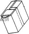 제11도에 도시된 것처럼, 팩 상단 띠접합부의 밀봉 접합 모서리에 의해 점선을 직접 형성할수도 있다. 이와같이 큰 구멍을 얻으려면, 점선들이 완전 절단선에서 시작하여, 바깥쪽으로 넓어져서 다시 정면을 향해서 가늘어져서 한점으로 모아지지 않으면 안된다. 이때, 구멍끝이 겹쳐진 삼각형(34)의 영역으로 확장되는 것이 중요하다. 왜냐하면 이와같이해서 팩에 담겨진 제품을 안전하게 유출시키는 것이 가능하기 때문이다.As shown in FIG. 11, a dotted line may be directly formed by the sealing joint edge of the pack top strip junction. In order to obtain such a large hole, the dashed lines must start from a complete cut line, widen outward and taper back to the front and be collected in one point. At this time, it is important that the end of the hole extends to the area of the overlapped triangle 34. Because in this way it is possible to safely spill the product contained in the pack.