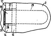 이 경우도 완전 절단선(27,28)은 제1접합부(14)에 연장하고, 또한 점선(29)은 제2접합부(15) 및 내용물과 접촉하는 팩면(2)에 연장하고 있다. 이 경우에, 제2팩면(6)의 상단부와, 이것에 대향하는 팩면(2)의 아래쪽과 나란하게 접합봉합부의 겹쳐진 모서리와의 사이에, 불접착제(31)가 피복되어 있고, 그 표면은, 완전 절단선(27,28)과 테두리선(17)에 의해 형성된 영역보다 약간 더 크다.Also in this case, the