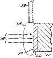 본 발명의 또다른 바람직한 실시 상태가 제5도에 도시되어 있다. 제5도에서 클러스터 비임(18)의 단위로서 공급된 반응물은 기판(12)를 구성하는 재료와 반응하여 기판(12)의 표면위에 반응 생성물 피막(62)를 형성한다. 피막(62)는 기판 반응물 및 클러스터 비임으로부터의 반응물이 피막(62)를 통해 서로 맞닿아 더 이상 확산되지 않을때까지 그 두께가 성장하여 피막(62)에 더 많은 반응생성물을 형성한다. 따라서, 피막(62)의 성장은 그 자체를 제한한고 있다. 피막(62)의 이런 유형의 성장례는 기판(12)가 실리콘이고, 클러스터 비임(18)이 질소 또는 산소를 갖는 단위들을 함유함으로써 에너지를 얻는 반응에서 질화규소나 산화규소 피막(62)가 형성되는 경우에 일어난다.Another preferred embodiment of the invention is shown in FIG. In FIG. 5, the reactant supplied as a unit of the