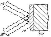 또 다른 바람직한 실시예가 제 7도에 설명되어 있다. 이 실시예에서는 제 2도에 나타낸 장치를 사용하여 에너지를 갖게 된  2종의 반응물을 표면(14)에 대해서 집중시켰다. 두가지 반응물은 2개의 별도의 클러스터 공급원 및 비임 조절 장치에 의해 생성된 2개의 분리된 클러스터 비임(18) 및 (18')로서 공급된다. 또한, 고체 반응 생성물은 표면(14)에 잔류하여 피막(68)를 형성하고, 휘발성 반응 생성물은 표면에서 이탈되어 펌핑된다. 이와 같은 2중으로 에너지를 얻는 반응례로서는 2가지 반응성 실란 및 메탄(또는 프로판)가스의 클러스터를 동시에 분사함으로써 탄화규소를 형성하는 것을 들 수 있다.  이제, 본 발명의 방법은 클러스터 비임 중의 클러스터로서 적어도 1종의 반응물을 공급함으로써 에너지를 얻는 표면 화학 반응을 유도하는 신규 방법을 제공한다는 것을 이해할 것이다. 클러스터들이 표면에서 붕해될 때, 비임중의 반응물 및 비임의 에너지가 표면에 방출된다. 반응물에 전달되는 에너지는 충분하며, 외부 에너지원을 반응물에 연결할 필요가 없다. 기판은 그의 저면으로부터 적당히 냉각될 수 있다. 에너지를 얻은 반응물은 이어서 표면 화학 반응 상태로 들어간다.Another preferred embodiment is described in FIG. In this example, the two reactants, which are energized, are concentrated on the