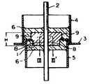 제6a도와 제6b도의 실시예에서는 중심도체(2)의 단면형상을 원형이외의 것으로 했지만, 제8a도와 제8b도의 실시예에서는 중심도체의 단면형상을 원형으로하고, 유전체의 관통공의 단면형상을 원형이외의 것으로 했다. 제8a도와 제8b도는 모두 제1도의 III-III'선을 따라 자른 단면도이다. 제8a도는 관통공의 단면형상을 원형중심도체(2)에 외접하는 정방형으로 한 것이다. 한편, 제8b도는 관통공의 단면형상을 원형주임도체(2)에 외접하는 타원형상으로 한 것이다.In the embodiments of FIGS. 6A and 6B, the cross-sectional shape of the
