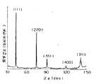 제22도는 다이아몬드막의 X-선 회절결과를 나타낸 그래프.22 is a graph showing X-ray diffraction results of diamond films.