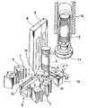 상기 슬라이드 기구(25)는 상기 감속기(27)의 회전축심과 직교하고 수평방향으로 뻗는 가이드(40) 및 이 가이드(40)와 평행으로 설치되고 회전자유로운 스크류 로드(41)를 갖고 이 가이드(40)에는 슬라이더(42)를 미끄럼운동 자유롭게 설치하고, 이 슬라이더(42)와 스크류 로드(41)와는 너트블록(43)을 통하여 나사맞춤되어 있다. 또 가이드(40)의 측방에는 슬라이드 모우터(44)를 설치하고, 이 슬라이드 모우터(44)와 상기 스크류 로드(41)와는 타이밍풀리(45), 타이밍벨트(46), 타이밍풀리(47)를 통하여 연결한다.The slide mechanism (25) has a guide (40) orthogonal to the axis of rotation of the reducer (27) and extends in the horizontal direction and a screw rod (41) installed in parallel with the guide (40) and free of rotation. The
