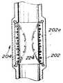 또 밸브(206)에는 그의 외표면에 테프론성의 망을 붙임으로써 그의 강도를 높일 수 있으며, 또한 제24도에 나타난 바와 같이, 하부에 핀(206c)을 형성하여 그의 팽출시에 핀(206c)이 옆방향으로 돌출되도록 함으로써 조임 상태를 효율좋게 놓일 수 있다.In addition, the strength of the