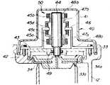 또 제5도에 있어서, 기판(43)과 플랜저(44)의 사이에는 섭동(攝動)저항이 적은 U자형 또는 Y자형의 팩킹(49)이 끼워져 있어서 액츄에이터(40)의 수밀성(水密性)이 높게 된다. 또한 이 팩킹(49), 플랜저(44)의 어느 것인가의 섭동부에 불소수지, 폴리에틸렌수지 등의 낮은 마찰계수, 내마모성 재료를 붙힐 수 있다.5, the U-shaped or Y-shaped packing 49 with little perturbation resistance is inserted between the board |