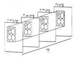 제4도는 연속하는 프레임의 관계를 도시한다. 도면에 도시한 바와 같이 부호화하는 연속하는 4프레임으로 완결하고 있고, 각 프레임의 내부에서는 공간방향으로 시간방향으로도 상관을 이용한 벡터 양자화가 실행되고 있다. 재생측에서는 벡터 양자화 인덱스(103)을 벡터 양자화 복호화기(3)에서 복호화여 복호 화상신호계열(104)를 얻는다. 상기 계열(104)를 제2의 프레임 메모리(4)에 라이트하고, 4프레임에 해당하는 복호화상 신호계열(104)의 라이트가 종료된 시점에서 각 프레임을 본래의 순서로 래스터 주사에 따라서 리드하여 복호 디지탈 화상 신호계열(105)를 얻는다. 여기서 부호화부의 앞에 놓여진 제1의 프레임 메모리(1), 복호화의 뒤에 놓여진 제2의 프레임 메모리(4)는 모두 시간방향으로 블럭화하는 프레임수의 배의 용량을 갖고, 1/2의 용량을 각각 리드와 라이트에 할당하는 더블 버퍼 제어를 실행할 필요가 있다.4 shows the relationship of successive frames. As shown in the figure, four consecutive frames are encoded, and vector quantization is performed using correlation in the spatial direction and the temporal direction inside each frame. On the reproduction side, the