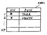 제 56 도 내지 제 59 도는 각각 제 55 도의 명칭매칭스텝 2242에서 참조되는 각종의 테이블 KNW1∼KNW4의 구성도.56 to 59 are structural views of various tables KNW1 to KNW4 referred to in name matching step 2242 in FIG. 55, respectively.