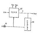 불휘발성 메모리가 내장된 반도체 집적회로에 있어서는, 예컨대 제6도에 나타낸 바와 같이 외부에 전압입력단(61)을 경유해서 공급되는 전압입력(V1)으로부터 예컨대 기입용의 고전압을 발생시키기 위한 승압회로(62)의 출력측에 출력전압(Vout)의 레벨을 일정하게 제어하기 위한 전압제어회로(63)가 설치되어 있다. 단, 제6도에서 참조부호 Vcc는 통상의 전원전압, Vss는 접지단위, EN은 활성화제어신호이다.In a semiconductor integrated circuit incorporating a nonvolatile memory, for example, as shown in FIG. 6, a booster circuit for generating, for example, a high voltage for writing from a voltage input V1 supplied via a