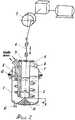 После заполнения емкости 1 через люк 9 исходными продуктами с твердой фазой и включения генератора 5 колебаний возвратно-поступательные движения от него через шток 4 передаются побудителю 3 колебаний и далее содержащимся в верхней замкнутой герметичной полости центральной трубы 2 упругому элементу 6 либо содержащемуся в нем газу (фиг. 2, 3) и затем жидкости непосредственно (фиг. 2) или через упругую перегородку (фиг. 3), либо через жидкость (фиг. 4). After filling the tank 1 through the