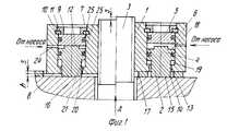 Кроме того, выполнение упомянутых прокладок в форме плоских полуколец позволяет без ухудшения условий монтажа максимально увеличить их опорную поверхность с одновременным приближением ее к силовой опорной зоне, улучшая тем самым условия работы гидроцилиндров (уменьшается плечо изгибающего момента) и, как следствие, равномерного распределения нагрузок, улучшающего работу резьбового соединения, а выполнение гайки разъемной облегчает ее закручивание при монтаже. In addition, the implementation of the said gaskets in the form of flat semicircles allows, without deteriorating the installation conditions, to maximize their bearing surface while at the same time approaching the force bearing zone, thereby improving the working conditions of the hydraulic cylinders (the bending moment arm is reduced) and, as a result, uniform distribution of loads, improving the work of the threaded connection, and the implementation of the detachable nut makes it easier to tighten during installation.