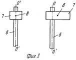 Центр 8 инерции инерционной массы 7 может быть расположен как на продольной оси 0'0' стержня 6, так и быть смещен относительно продольной оси 0'0' стержня 6 (фиг. 3). The center of