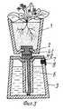 Цель достигается новым устройством для выращивания растений с автоматическим увлажнением почвы (фиг.1 и 2), содержащим один или несколько вегетационных сосудов 1 с дренажными отверстиями 2, герметичную емкость для воды 3, в корпусе которой выполнено выпускное отверстие 7 с герметично размещенной в нем пробкой 8 и одного или нескольких (по числу вегетационных сосудов) фитилей 4, выполненных из гидрофильного капиллярнопористого материала, при этом нижний конец фитиля касается дна емкости для воды, причем согласно изобретению, емкость для воды снабжена герметично закрепленными одной или несколькими трубками 6, верхние концы которых сообщаются с атмосферой, а нижние направлены внутрь емкости и расположены на расстоянии 5-10 мм от ее дна, при этом фитили 4 размещены внутри трубок 6, а верхние их концы проходят через дренажные отверстия 2 внутрь вегетационных сосудов 1. The goal is achieved by a new device for growing plants with automatic soil moistening (FIGS. 1 and 2), containing one or