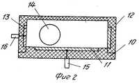 В частном случае выполнения датчика 2 движения и положения дно корпуса 10 выполнено вогнутым. Шарик 14 без движения и при равномерном движении находится в нижней части вогнутого дна и может замкнуть слой 11 со слоем 13 только при определенном ускорении, величина которого зависит от веса шарика и радиуса кривизны вогнутого дна. In the particular case of the implementation of the