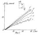 На фиг. 2 приведена зависимость сигнала контроля от времени экспонирования на выходе дополнительного синхронного усилителя, установленного в первом (сплошные кривые) и во втором (пунктирные кривые) канале при выключенном устройстве (кривые 1 и 1'), при одноканальном (кривые 2 и 2') и двухканальном (кривые 3 и 3') режиме работы устройства. In FIG. Figure 2 shows the dependence of the control signal on the exposure time at the output of an additional synchronous amplifier installed in the first (solid curves) and second (dashed curves) channel with the device turned off (curves 1 and 1 '), with a single-channel (