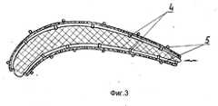 Пример 4. Изготовление тонкостенного дополнительного стержня можно осуществить зацело с выступами запрессовкой керамической массы в пресс-форму, в матрице которой имеются выемки и штыри. Таким способом получали тонкостенную пластину с отверстиями и двусторонними выступами в шахматном порядке, изгибали по профилю пера основного стержня, прокаливали и устанавливали на основном стержне, как в примере 1. Example 4. The manufacture of a thin-walled additional rod can be carried out integrally with protrusions by pressing the ceramic mass into the mold, in the matrix of which there are recesses and pins. In this way, a thin-walled plate with holes and bilateral protrusions in a checkerboard pattern was obtained, bent along the feather profile of the main rod, calcined and mounted on the main rod, as in example 1.
