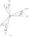 (h+h0)•Byt, (h+h0)•Bzp, (1+k+k0)•Bxt, (1+k+k0)•Byt, (1+k+k0)•Bzt, Bxp+Bx0, Byp+By0, Bzp+Bz0.The device according to the second embodiment, in the absence of sample 10 at an additional point (see Fig. 1), provides the determination of the product of the Poisson's ratios of the object by Bt similarly to the device according to the first embodiment, the values of which remain in the memory of device 8. Then, they are placed in an additional space point that is rigidly connected with the coordinate system of object 9, a sample 10 of magnetically soft iron, the Poisson parameters of which, when its orientation is selected, are known at the location of sensor 1. When synchronously measuring projections, syati vectors of magnetic induction and course angles, roll, pitch, for example, in the circulation of the object, in particular vessel in which the direction cosines of the axes of the object coordinate system are different, obtained ten values of the projections of the magnetic induction Bxj, Byj, Bzj one and the same axis of the object. Algebraic expressions Bxj , Byj , Bzj , forming a system of equations, are presented in the proposed device according to the second embodiment. In these equations (l1j , m1j , n1j ), (l2j , m2j , n2j ), (l3j , m3j , n3j ) the direction cosines of the corresponding axes O'X ', O'Y', O 'Z' (see Fig. 2) of the coordinate system of the object O'X'Y'Z ', which are functions of the angles of the course ψ of the roll qx and the pitch θy relative to the reference coordinate system OXYZ. In these equations, the unknown parameters are Bxp + Bx0 , Byp + By0 , Bzp + Bz0 and the products Bxt , Byt , Bzt and the corresponding sums of the Poisson's ratios of the object and the sample. The measured parameters are the direction cosines of the axes of the object's coordinate system, the Poisson's ratios of the sample and Bxj , Byj , Bzj for the different directional cosines of the axes of the object's coordinate system, therefore, each of the systems of the mentioned equations has a stable and unique solution. The solution to this system of equations is (1 + a + a0 ) • Bxt , (1 + a + a0 ) • Byt , (1 + a + a0 ) • Bzt , (b + b0 ) • Bxt , (b + b0 ) • Byt , (b + b0 ) • Bzt , (c + c0 ) • Bxt , (c + c0 ) • Byt , (c + c0 ) • Bzt , (d + d0 ) • Bxt , (d + d0 ) • Byt , (d + d0 ) • Bzt , (1 + e + e0 ) • Bxt , (1 + e + e0 ) • Byt , (1 + e + e0 ) • Bzt , (f + f0 ) • Bxt ,