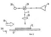 Обрабатываемую подложку можно избирательно обрабатывать лазерным излучением, используя различные методы. Как показано на фиг. 2, например, подложку 12 крепят на двухкоординатном столе 13, который можно избирательно перемещать относительно неподвижного луча лазерных импульсов 11, которые направляются через расщепитель луча 24 и фокусирующую линзу 28, после чего он контактирует с выбранными участками поверхности подложки 12, над которой течет инертный газ 18. The substrate to be treated can be selectively treated with laser radiation using various methods. As shown in FIG. 2, for example, the