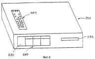 Аппаратный ведущий терминал 220 имеет множество входных и выходных портов, чтобы дать ему возможность осуществлять связь с другими местными и удаленными устройствами. Аппаратный ведущий терминал 220 имеет входной порт, который принимает информацию от кабельной головной станции 208. Кроме того, блок имеет по меньшей мере два выходных порта, которые обеспечивают связи от аппаратного ведущего терминала - 220 к телевизору и ВМ. Некоторые варианты выбора из меню могут заставить аппаратный ведущий терминал 220 посылать управляющий сигналы непосредственно на ВМ для автоматического программирования или работы ВМ. Аппаратный ведущий терминал 220 содержит также телефонное гнездо, которое может использоваться для сопровождения, отыскания неисправностей, перепрограммирования и дополнительных потребительских свойств. Аппаратный ведущий терминал 220 может также содержать стерео/аудио выходные терминалы и входной порт спутниковой зеркальной антенны. The