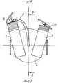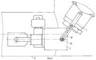 Шарнир излома состоит из двух рычагов 18, симметрично закрепленных шарнирами 19 на корпусе 1 и соединенных между собой хомутом 20. Рычаги 18 на части своей длины имеют продольные пазы 21. На съемной части 2 установлены две резьбовые шпильки 22, которые проходят через продольные пазы 21 в рычагах 18 и на концы шпилек 22 навинчиваются гайки. The fracture hinge consists of two