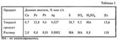 Суспензию непрерывно выгружают из последней секции реактора, поддерживая уровень суспензии в реакторе. Выгруженную суспензию отстаивают, получая суспензию, содержащую 60 мас.% твердых веществ. Составы твердого продукта и раствора приведены ниже в табл.1. Экстракция цинка равна 52%. The suspension is continuously discharged from the last section of the reactor, maintaining the level of suspension in the reactor. The unloaded suspension is defended, obtaining a suspension containing 60 wt.% Solids. The compositions of the solid product and the solution are shown below in table 1. Zinc extraction is equal to 52%.