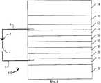 В этом варианте по меньшей мере один электропроводящий слой имеет первый показатель преломления, один из оптически прозрачных слоев имеет показатель преломления, который ниже первого показателя преломления, а другой из оптически прозрачных слоев имеет показатель преломления выше показателя преломления одного из оптически прозрачных слоев. В предпочтительных вариантах данного устройства один из оптически прозрачных слоев имеет показатель преломления в интервале 1,4-1,7, а другой из оптически прозрачных слоев имеет показатель преломления почти равный или выше первого показателя преломления. Кроме того, два оптически прозрачных слоя предпочтительных устройств согласно изобретению имеют совокупную толщину в интервале от 30 до 70 нм. In this embodiment, at least one electrically conductive layer has a first refractive index, one of the optically transparent layers has a refractive index that is lower than the first refractive index, and the other of the optically transparent layers has a refractive index higher than the refractive index of one of the optically transparent layers. In preferred embodiments of this device, one of the optically transparent layers has a refractive index in the range 1.4-1.7, and the other of the optically transparent layers has a refractive index almost equal to or higher than the first refractive index. In addition, two optically transparent layers of the preferred devices according to the invention have an aggregate thickness in the range of 30 to 70 nm.