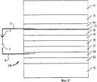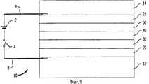 Как пример описывается способ выбора показателя преломления и толщины слоя оптической настройки. Сначала определяется желательный показатель преломления путем умножения 1,5 (показателя преломления стеклянной подложи 12) на 2,1 (показатель преломления прозрачного проводящего оксидного слоя 20) и извлечения корня квадратного из этого произведения. В результате данного расчета получен показатель преломления 1,77. Затем определяется толщина слоя оптической настройки 61 путем деления 540 нм на 1,77, что дает длину световой волны приблизительно 300 нм. Предпочтительно толщина слоя оптической настройки 61 составляет одну четвертую данной величины или приблизительно 75 нм. Расчет для слоя оптической настройки 62 осуществляется аналогичным образом. As an example, a method for selecting a refractive index and a layer thickness of an optical tuning is described. First, the desired refractive index is determined by multiplying 1.5 (the refractive index of the glass substrate 12) by 2.1 (the refractive index of the transparent conductive oxide layer 20) and extracting the square root from this product. As a result of this calculation, a refractive index of 1.77 was obtained. Then, the thickness of the