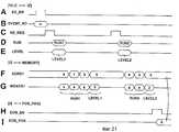 Реконструируемые кадры, хранящиеся в устройствах памяти изображения 128A - 128D, считываются в виде выходного сигнала движущегося изображения посредством селектора 126 в ответ на адреса считывания, формируемые генератором адреса дисплея 127. Сканирующий преобразователь (не показан) преобразует выходной сигнал движущегося изображения, считываемый из устройств памяти изображения 128A - 128D в растровый формат желаемого формата видеосигнала, например, NTSC. Результирующий выходной сигнал движущегося изображения может быть затем отображен на подходящем дисплее, например, электронно-лучевой трубке (CRT) и т.п. В этом примере генератор синхросигнала 131 синхронизируется от внешнего источника синхросигнала и периодически генерирует кадровый синхросигнал для доставки его к генератору адреса дисплея 127. Генератор адреса дисплея 127 генерирует считываемые адреса синхронно с кадровым синхросигналом. The reconstructed frames stored in the