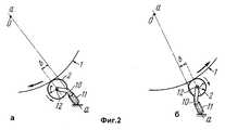фиг. 2 а, б изображает опорное колесо, поворотная ось которого смещена относительно оси вращения колеса, согласно изобретению;