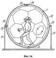 Колесные опоры 2, на которых расположена сфера, закреплены на раме 18 (фиг. 10), показан вариант, когда рама представляет пятиугольник, и на ней закреплены пять колесных опор 2.