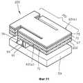 В каждом из оснований 108 образуют перемычку 99, предназначенную для электрического соединения каждого из соединительных выводов 61 с каждым из верхних электродов 71, выполненную из электрически проводящего материала, например, вольфрама (W), посредством создания вначале отверстия, проходящего от верха основания к верхней части соответствующего соединительного вывода 61, с использованием метода травления, а затем заполнения его электрически проводящим материалом, как показано на фиг. 12C. In each of the