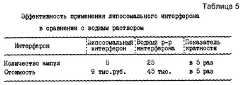 Коэффициент включения интерферона 55-65%. Сравнительная эффективность включения интерферона в различные носители помещена в табл. 3. The interferon inclusion coefficient is 55-65%. The comparative efficacy of incorporating interferon into various carriers is given in table. 3.