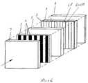 Сепарация изображений левого и правого кадров стереопары обеспечивается линейным растром (фиг. 6) за счет возможности раздельного наблюдения левым и правым глазами полос iЛ и (i+1) П, принадлежащих соответственно левому и правому кадрам стереопары. The separation of the images of the left and right frames of the stereo pair is provided by a linear raster (Fig. 6) due to the possibility of separate observation by the left and right eyes of the bands iL and (i + 1) P belonging respectively to the left and right frames of the stereo pair.