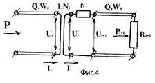Переключение выходных концов обмотки идеального трансформатора позволяет обеспечивать синфазность излучаемого электрического поля во всех ИЩ линейки для значения угла θ = 180o. Коэффициент трансформации Ni выбирается из условия согласования каскада по входу: