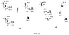 фиг. 7 (а, б, в) изображают различные конфигурации элементов в системе GSM, согласно изобретению;