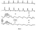 Согласно способу анализируют и обрабатывают данные кривых регистрации парных сосудов левого и правого полушарий головного мозга. Как следует из рассмотрения данных (см. фиг.1 и 2), кровенаполнение парных сосудов правого и левого полушарий существенно различается. Так, видно, что амплитуды кривых левого полушария головного мозга (фиг. 1 и 2) существенно снижены по сравнению с амплитудами кривых правого полушария, что связано с окклюзией сосудов левого полушария. Синхронная запись одноименных (парных) сосудов с учетом КА позволит выявить зону нарушения мозгового кровообращения и особенности перераспределения крови, представит возможность установить степень окклюзии сосудов головного мозга. According to the method, the data of the registration curves of paired vessels of the left and right hemispheres of the brain are analyzed and processed. As follows from a review of the data (see figures 1 and 2), the blood supply to the paired vessels of the right and left hemispheres is significantly different. So, it is seen that the amplitudes of the curves of the left hemisphere of the brain (Fig. 1 and 2) are significantly reduced compared with the amplitudes of the curves of the right hemisphere, which is associated with occlusion of the vessels of the left hemisphere. Synchronous recording of the vessels of the same name (paired), taking into account the spacecraft, will reveal the zone of cerebrovascular accident and blood redistribution, will provide an opportunity to establish the degree of occlusion of cerebral vessels.