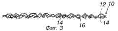фиг. 3 - поперечное сечение, аналогичное фиг. 2, но изображающее способный к усадке оберточный материал по данному изобретению после усадки;