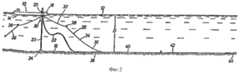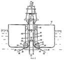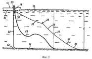 Гибкие подъемники 22 проходят от турели 20 вниз к морскому дну 16 и соединены с добывающими скважинами, например, обозначенными позициями 24 для транспортировки нефти или газа на судно 10 для временного хранения. Подъемники 22 имеют достаточную длину гибкого участка, чтобы обеспечить возможность заранее определенных перемещений судна без повреждения подъемников 22.