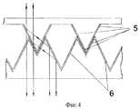 На фиг. 3 показаны конструктивное выполнение фрагмента формирователя-поляризатора излучения (2), использующего прямолинейные поверхности в системах разделителей ортогональных поляризационных составляющих излучения (5) и формирователей параллельности лучей (6), и ход лучей ортогональных поляризационных составляющих излучения в пространстве. In FIG. Figure 3 shows the constructive implementation of a fragment of the radiation shaper-polarizer (2) using straight surfaces in systems of separators of the orthogonal polarizing radiation components (5) and beam parallelism shapers (6), and the path of the rays of the orthogonal polarizing radiation components in space.