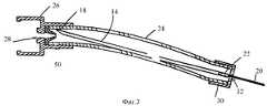 Хорошо известной и общепринятой является врачебная практика вливания жидкостей и лекарственных средств непосредственно в кровяной поток пациентов. Кроме того, в процессе хирургических операций часто бывает необходимо проводить переливание крови и парентеральных жидкостей. До сих пор введение таких жидкостей в сердечно-сосудистую систему пациента требовало пунктуры вен с использованием полой жесткой иглы, имеющей проксимальное место подвода жидкости, соединяющее иглу с источником жидкости для внутривенного вливания или чем-либо подобным. Этот способ введения жидкостей создает ряд устойчивых проблем при его реализации. Во-первых, жесткость введенной в вену иглы требует, чтобы игла, обычно находящаяся на руке, удерживалась в целях безопасности в неподвижном положении на месте пунктуры вены в течение всего периода введения или переливания жидкости, на что может потребоваться много времени. Во-вторых, в тех случаях, когда возникает необходимость периодически отбирать образцы крови и/или последовательно вводить внутривенные жидкости, от пациентов может потребоваться каждый раз подвергаться пунктуре, а повторные венные пунктуры в целом являются в высшей мере травматической операцией. The medical practice of injecting liquids and drugs directly into the blood stream of patients is well known and generally accepted. In addition, during surgery, it is often necessary to carry out a transfusion of blood and parenteral fluids. Until now, the introduction of such fluids into the patient’s cardiovascular system required venous puncture using a hollow rigid needle having a proximal fluid supply point connecting the needle to an intravenous fluid source or the like. This method of introducing liquids creates a number of persistent problems in its implementation. Firstly, the stiffness of the needle inserted into the vein requires that the needle, usually located on the arm, be kept stationary for safety reasons at the site of the vein puncture during the entire period of fluid injection or transfusion, which can take a lot of time. Secondly, in cases where it becomes necessary to periodically take blood samples and / or to inject intravenous fluids sequentially, patients may be required to undergo puncture every time, and repeated venous punctures as a whole are a highly traumatic operation.