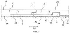 Фиг. 1 и 2 показывают схематически, в два этапа, соединение вместе двух панелей пола различной толщины в "плавающем" или незакрепленном положении в соответствии с первым вариантом исполнения изобретения. FIG. 1 and 2 show schematically, in two stages, joining together two floor panels of different thicknesses in a "floating" or loose position in accordance with the first embodiment of the invention.