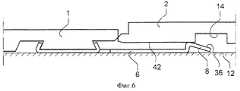 Можно применять другие материалы для планки, например листы из других материалов, а также алюминиевые и пластмассовые профили. Либо планку 6 можно выполнить за одно целое с панелью 1 с планкой. В любом случае планка 6 должна быть выполнена как одно целое с панелью 1, имеющей планку, то есть она не должна устанавливаться на панели 1 с планкой во время настила пола. В качестве неограничивающего примера планка 6 может иметь ширину примерно 30 мм и толщину примерно 0.5 мм. Other plank materials can be used, for example sheets of other materials, as well as aluminum and plastic profiles. Or, the