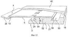Фиг. 11 показывает в перспективе способ настила и соединения панелей пола в соответствии с третьим вариантом исполнения изобретения. FIG. 11 shows in perspective a method of flooring and joining floor panels in accordance with a third embodiment of the invention.