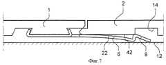 В соответствии с особенно предпочтительным исполнением изобретения предложена система, позволяющая точно соединять тонкие напольные панели, имеющие, например, толщину порядка 3 мм, и при этом образовать гладкую верхнюю поверхность, независимо от допусков, в точке соединения. In accordance with a particularly preferred embodiment of the invention, there is provided a system for precisely connecting thin floor panels having, for example, a thickness of the order of 3 mm, and at the same time forming a smooth upper surface, regardless of tolerances, at the connection point.