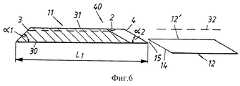 Как также очевидно из фиг. 2 и 3, подушка 11 имеет преимущественно плоскую нижнюю поверхность и преимущественно плоскую верхнюю поверхность, параллельную нижней поверхности, причем подушка имеет общую толщину t1, равную 40 мм. В горизонтальном положении подушка имеет преимущественно прямой передний край, который скошен в зоне 3 около верхней поверхности подушки. Оба боковых края 5, 6 подушки 11 преимущественно параллельны друг другу и направлены под прямыми углами к переднему краю подушки.As is also apparent from FIG. 2 and 3, the