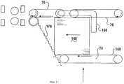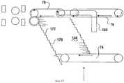 Фиг. 44 - схематичный вид конфигурации ленточных конвейеров и шкивов рядом с механизмом заслонки, показанным на фиг. 39. FIG. 44 is a schematic view of a configuration of belt conveyors and pulleys adjacent to the shutter mechanism shown in FIG. 39.