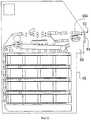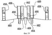 Фиг. 56 - вид, подобный показанному на фиг. 55, в котором пальцы, удерживающие стопку листов в зоне хранения, втянуты, для обеспечения взаимодействия листов с внутренней поверхностью дверцы секции. FIG. 56 is a view similar to that shown in FIG. 55, in which the fingers holding the stack of sheets in the storage area are retracted to allow the sheets to interact with the inner surface of the section door.