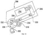 Фиг. 42 - вид механизма заслонки, показанного на фиг. 39, в состоянии, обеспечивающем возможность прохождения документа от контейнерного механизма транспортировки к сегменту периферийного механизма транспортировки, причем документ перемещается в направлении, противоположном показанному на фиг. 41. FIG. 42 is a view of the shutter mechanism shown in FIG. 39, in a state allowing the document to pass from the container transport mechanism to a segment of the peripheral transport mechanism, the document moving in the opposite direction to that shown in FIG. 41.