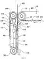 Фиг. 45 - схематичное представление механизма транспортировки листов, иллюстрирующего принципы, используемые для перемещения документов в сегментах периферийного механизма транспортировки и в контейнерных механизмах транспортировки. FIG. 45 is a schematic representation of a sheet transport mechanism illustrating principles used to move documents in segments of a peripheral transport mechanism and in container transport mechanisms.